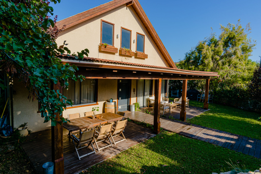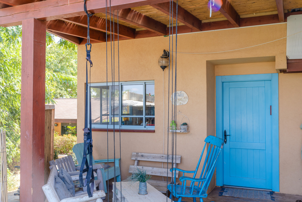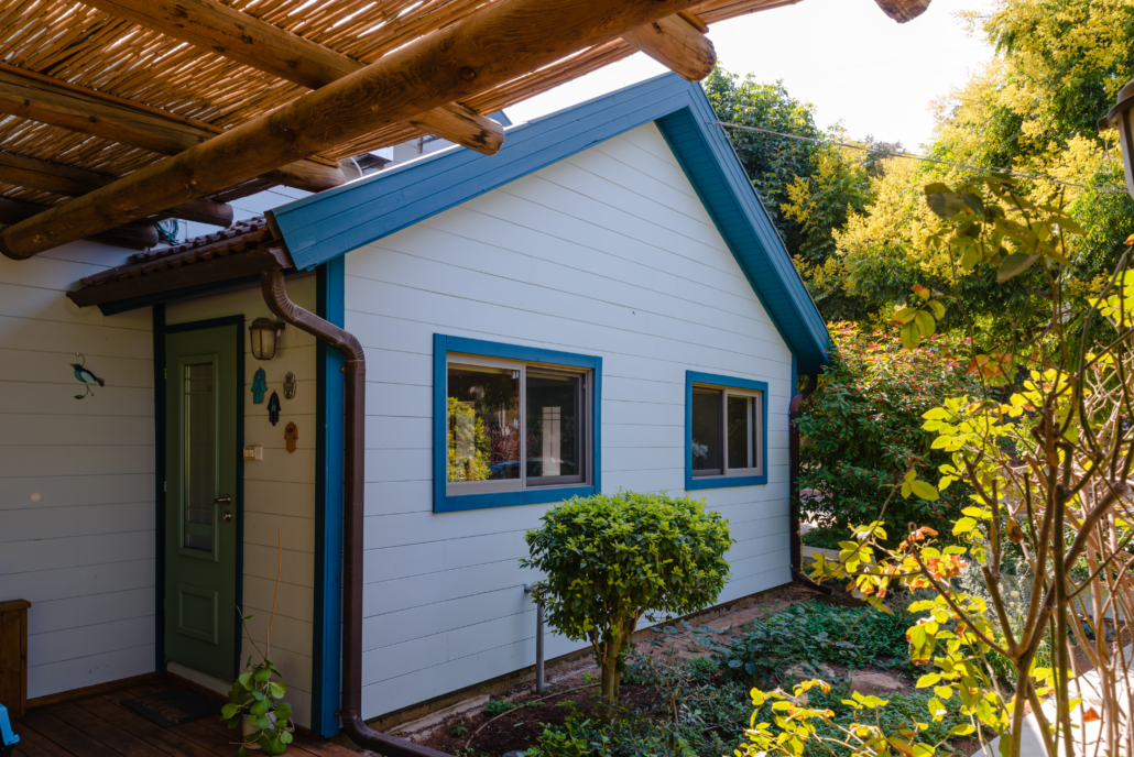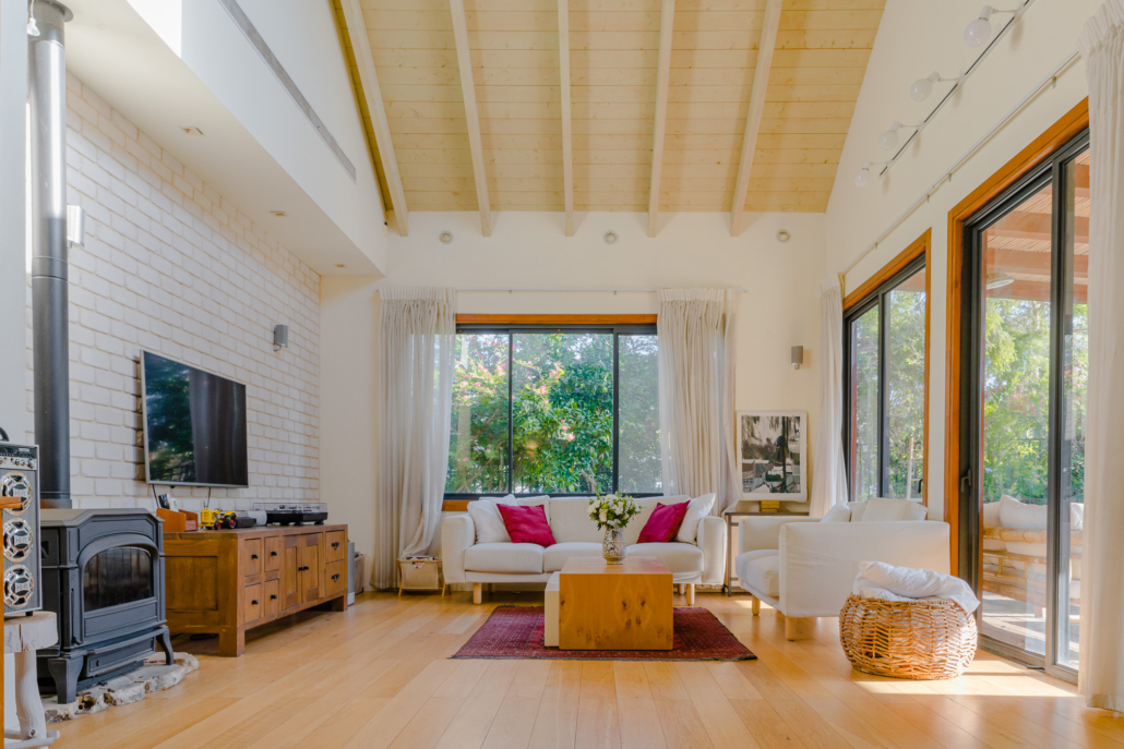 הבית של עופר וחמי מנירית הוא בית עץ עם קומת גלריה.
